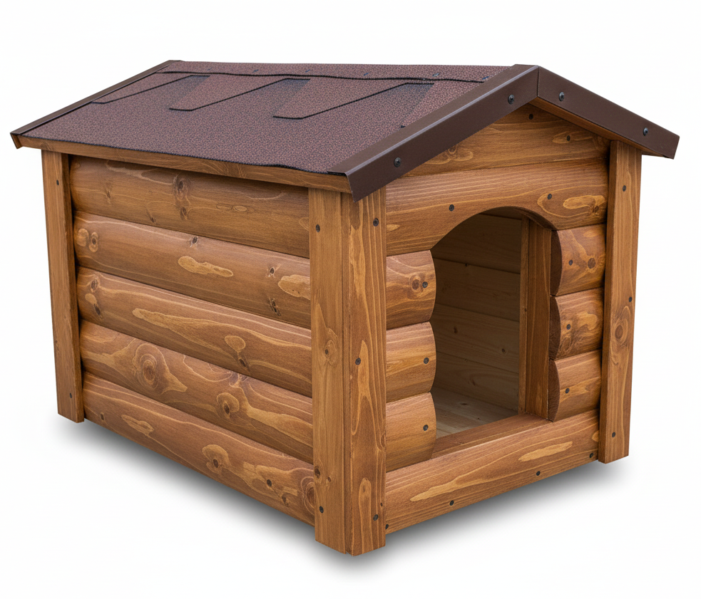 Будка для маленького собаки. Утеплена стружкою, подвійна стінка, накрита бітумною черепицею або металопрофілем. Приблизні розмір будки ширина-50см, довжина-80см, висота-60см. Також наявності вагонка, блок-хаус, підлога, імітація бруса, сходинки, балясини, поручні, косоури, погонажні вироби, лаки, засоби захисту та ін.